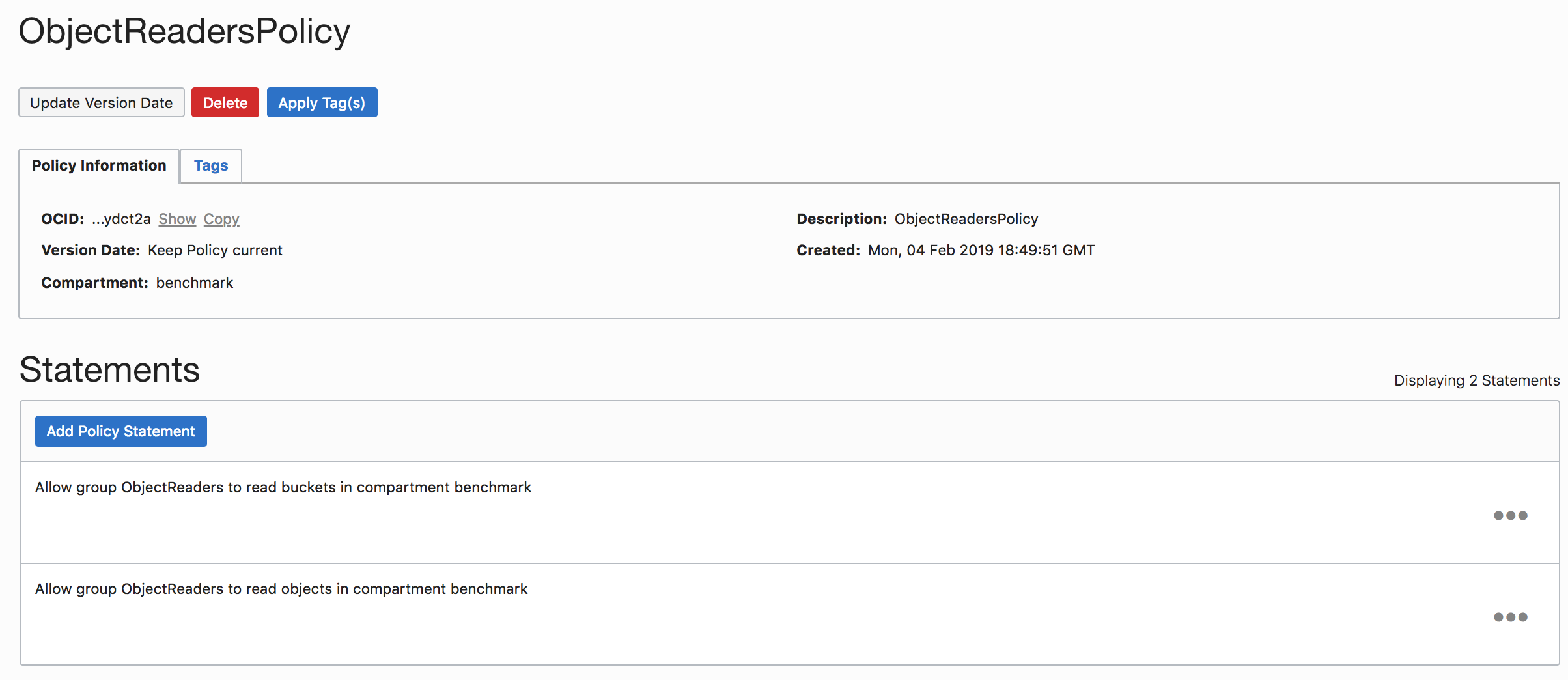 admit group CopySourceGroup of tenancy CopySourceTenancy to {OBJECT_READ, OBJECT_CREATE, OBJECT_OVERWRITE, OBJECT_INSPECT, OBJECT_DELETE} in tenancy</ocid_for_group_in_source_tenancy></ocid_for_source_tenancy>