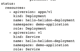VerrazzanoHelidonWorkloadを開くと(hello-helidon-appconf -> hello-helidon-component -> VerrazzanoHelidonWorkloadを参照)、Kubernetes DeploymentとServiceが自動的に作成されていることが確認できると思います。