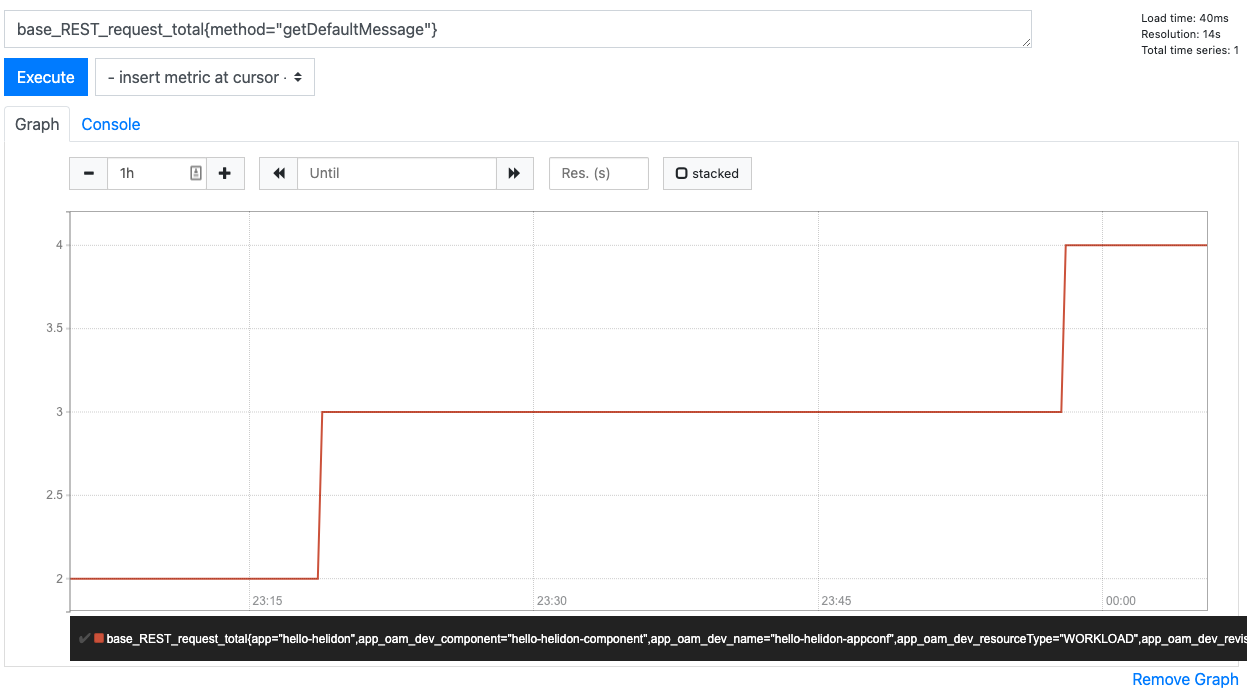 Application ConfigurationでMetrics traitsを有効にしたため、VerrazzanoもHelidonからメトリクスを収集し、PrometheusとGrafanaに送信を開始することになります。なお、このコンポーネントのメトリクスがどこにあるのかを通知する必要はありませんでした。単純にWorkloadの種類に基づいて動作します。