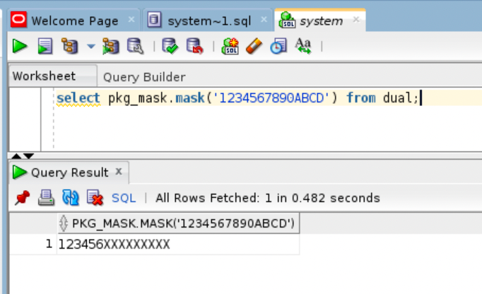 そのためにpkg_maskパッケージを作成し、その中に1つの関数と1つのプロシージャを記述します。このコードをワークシートに貼り付けて実行します。