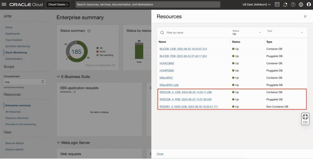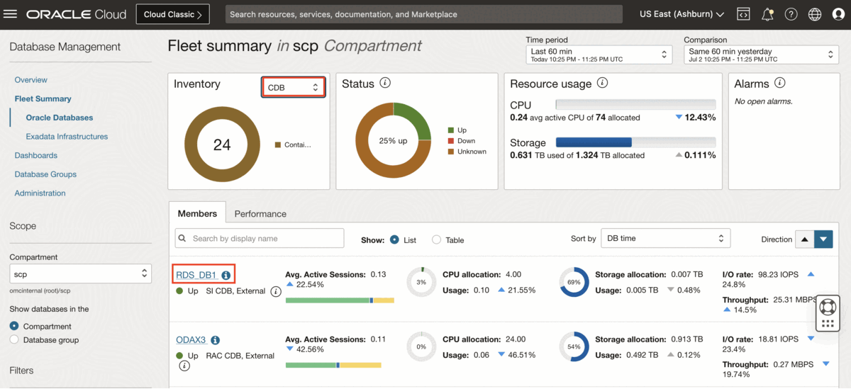 ここでは、Amazon RDSで実行されているCDB、PDBおよび非コンテナを検出しました。