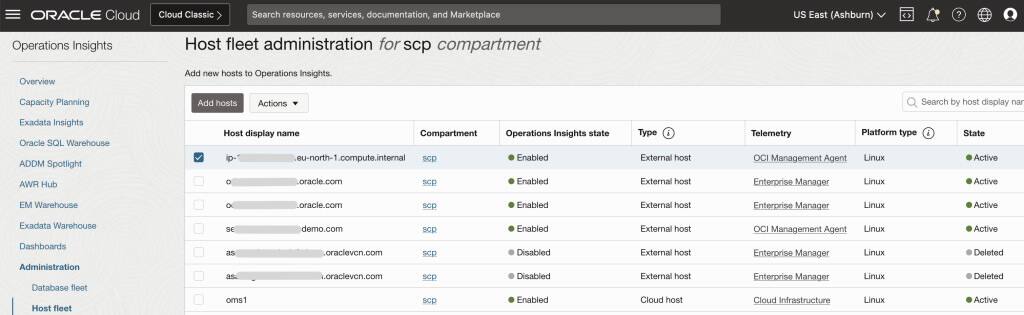図11: Operations Insightsの容量計画のホストを追加しました。
