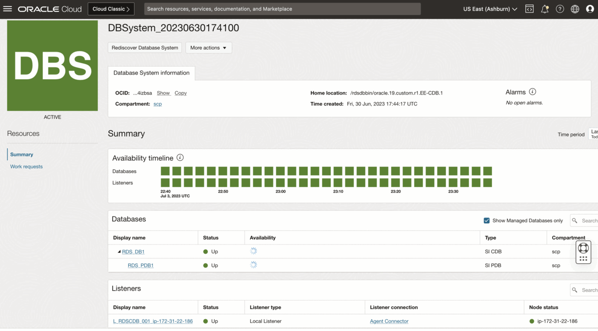 データベース管理サービスを使用して、Oracleリスナー、自動ストレージ管理(ASM)、Clusterwareなどのデータベース・エコシステムを監視します。