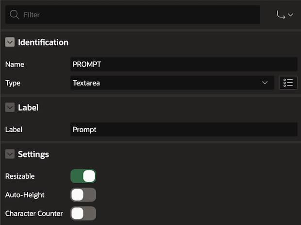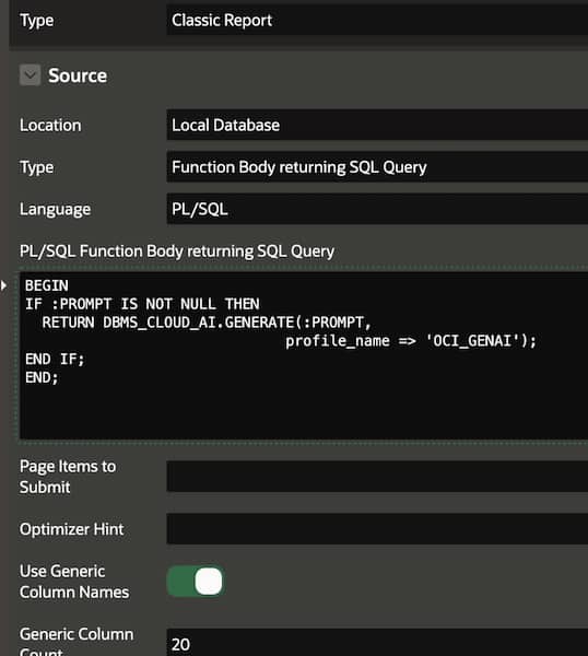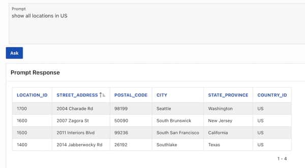7. プロンプトを実行するためにUIが必要な場合は、Oracle APEXを使用することもできます。