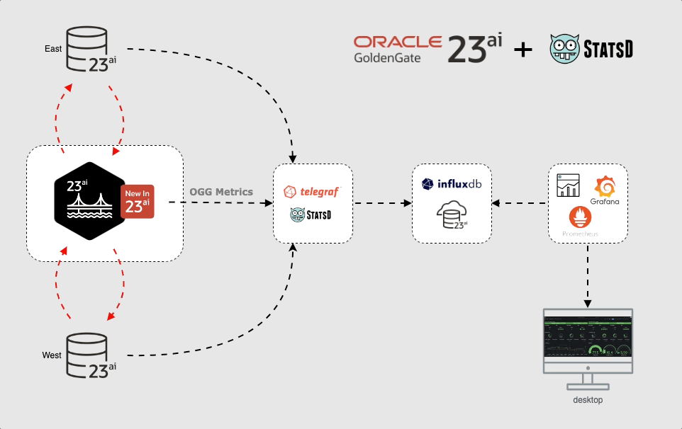 Oracle GoldenGate 23aiには、即時利用可能なStatsD形式のメトリックが含まれるようになりました。100以上のメトリックがあり、これはデプロイメントのインストール時またはAPIを介して後でアクティブ化できます。