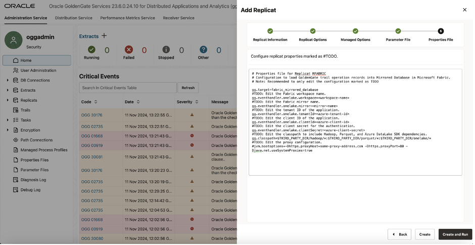Microsoft Fabricでのミラー化データベース用のDAA ReplicatのGGの作成および構成