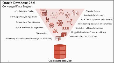 今日のアプリケーションの多くは、マイクロサービス、DevOps、ドキュメント・データ・モデルなどの開発にクラウドネイティブなアプローチを使用して構築されています。多くの場合、顧客は複数の単一目的データベースをデプロイし、データ管理、統合および移行に大量の開発作業を費やします。これはビジネス上の価値ではありません。Oracleのアプローチは異なります。コンバージド・データ・エンジンであるOracle Database 23aiは、イノベーションの原動力である時間を提供します。開発者が必要な形式でデータを提供し、強力な組み込みのAI Vector SearchおよびRetrieval Augmented Generation機能を備えています。ネイティブなローコード/ノーコード開発プラットフォームにより、コードを記述する必要なく、迅速なアプリケーション開発が可能になります。これらの機能は、開発者がイノベーションに要する時間を短縮し、ビジネスを推進する機能の構築に集中できるようにします。
