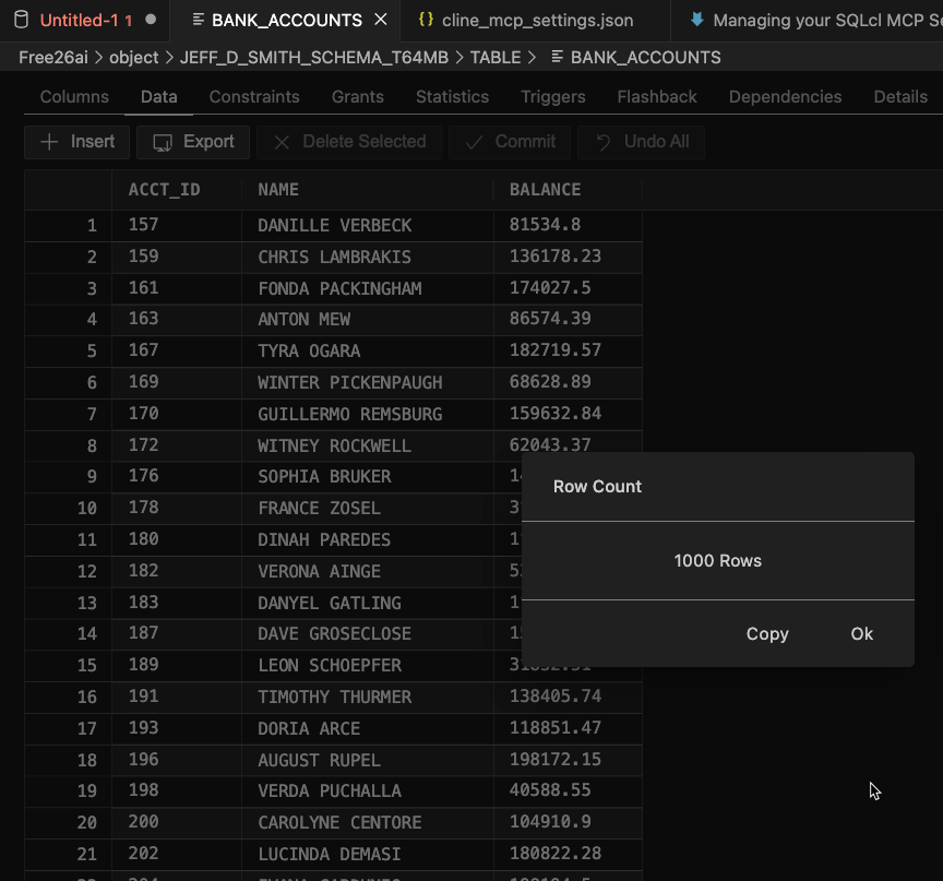 すべてのデータがロードされたので、心配な場合はいつでもテーブルを開いてデータ ページを参照したり、行数を尋ねたりすることができます。