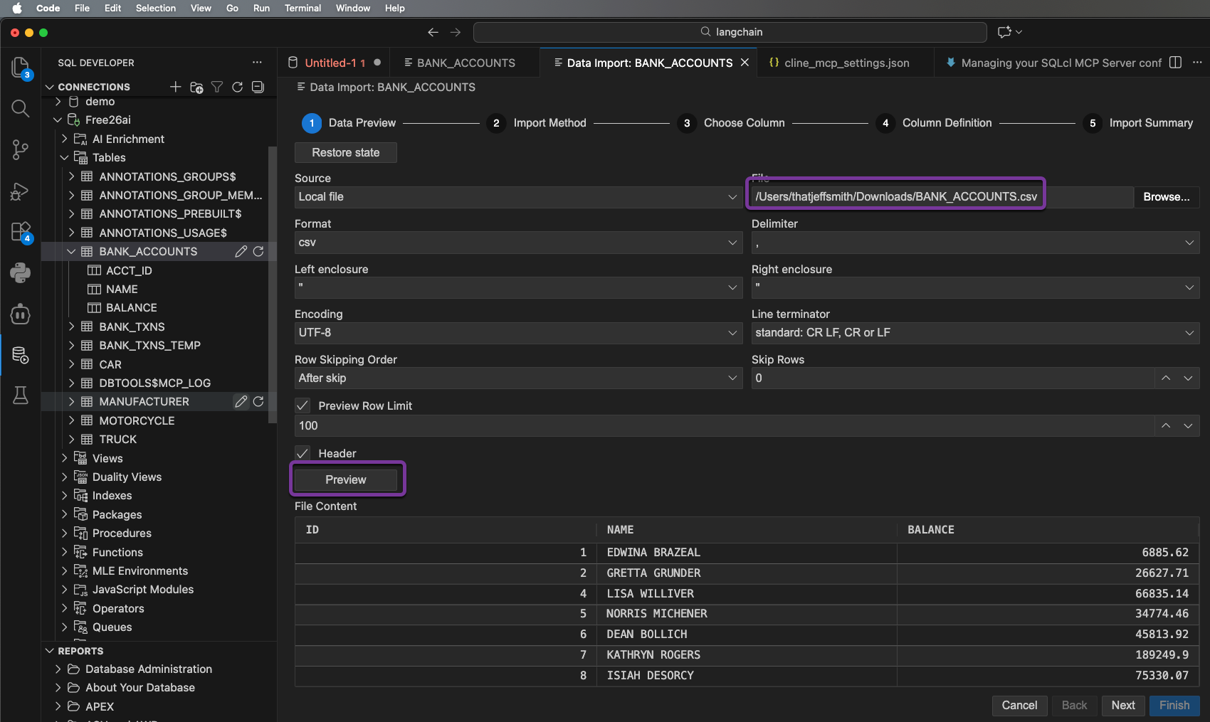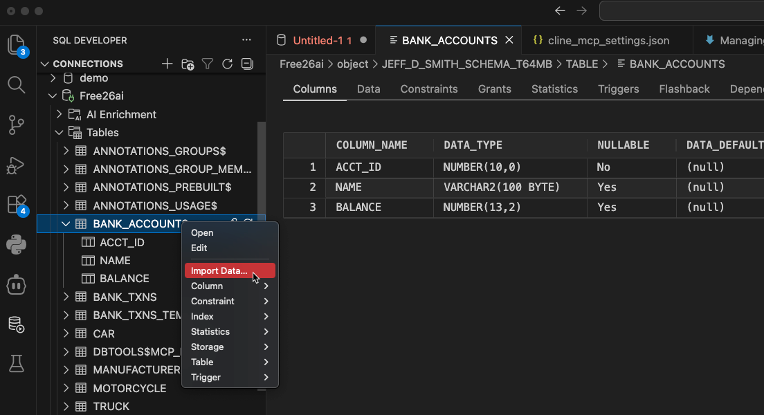 このラボを「自分で」実行する場合は、2つのテーブルを読み込むためのCSVファイルがいくつか提供されます。SQL Developer拡張機能を使えば、VS Codeでも同じことができます。